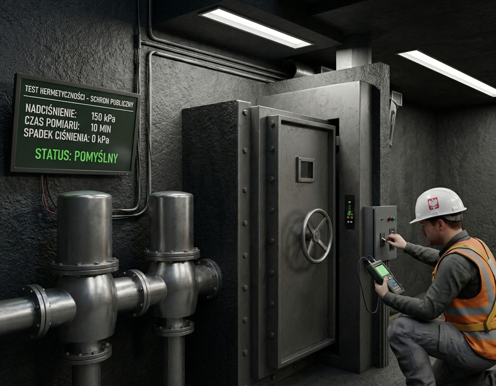 Z kolei realizacja schronu publicznego jest procesem ściśle sformalizowanym, powiązanym z systemem finansowania i poddanym wieloetapowej weryfikacji. Odbiory techniczne prowadzone są nie tylko przez Nadzór Budowlany, ale obligatoryjnie również przez Państwową Straż Pożarną (w zakresie bezpieczeństwa i wyposażenia) oraz Państwową Inspekcję Sanitarną (w zakresie wymogów higienicznych). Taki rygor ma na celu zapewnienie, aby obiekty służące zbiorowej ochronie spełniały surowe warunki techniczne określone w rozporządzeniu z 2025 r. i zachowały realną gotowość eksploatacyjną w sytuacjach zagrożenia.